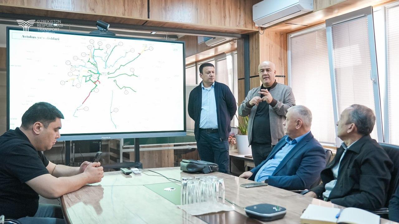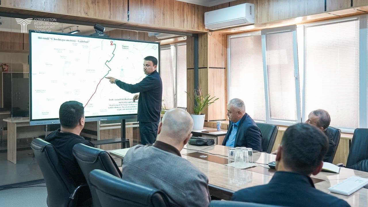 Shundan so‘ng, Toshkent shahar transport boshqarmasida poytaxt va unga yondosh hududlarni qamrab oluvchi jamoat transporti yo‘nalishlarini tashkil etish yuzasidan olib borilayotgan ishlar to‘g‘risida taqdimot o‘tkazildi.