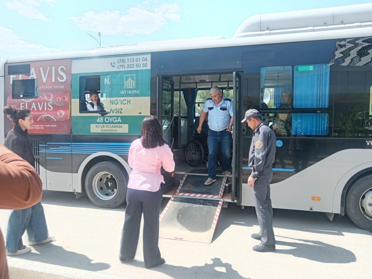 Xususan, jamoat transportiga chiqish va tushish sharoitlari, transport vositalarida yaratilgan qulayliklar, sanitariya-gigiena qoidalariga rioya etilishi, maxsus o‘rindiqlar mavjudligi, audio eshittirish moslamalarining borligi va soz holati o‘rganildi.